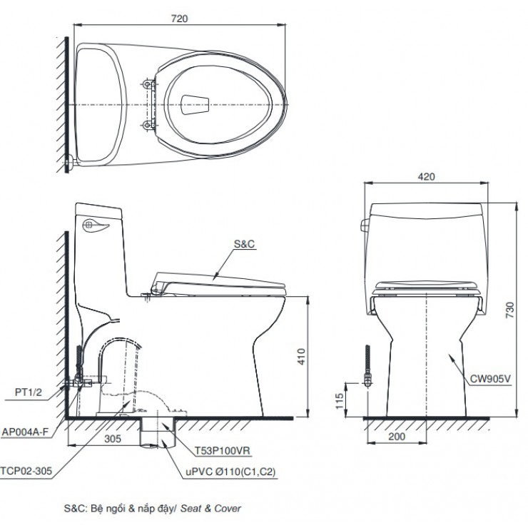 Áp lực nước sử dụng: 0.05 ~ 0.70 (Mpa).