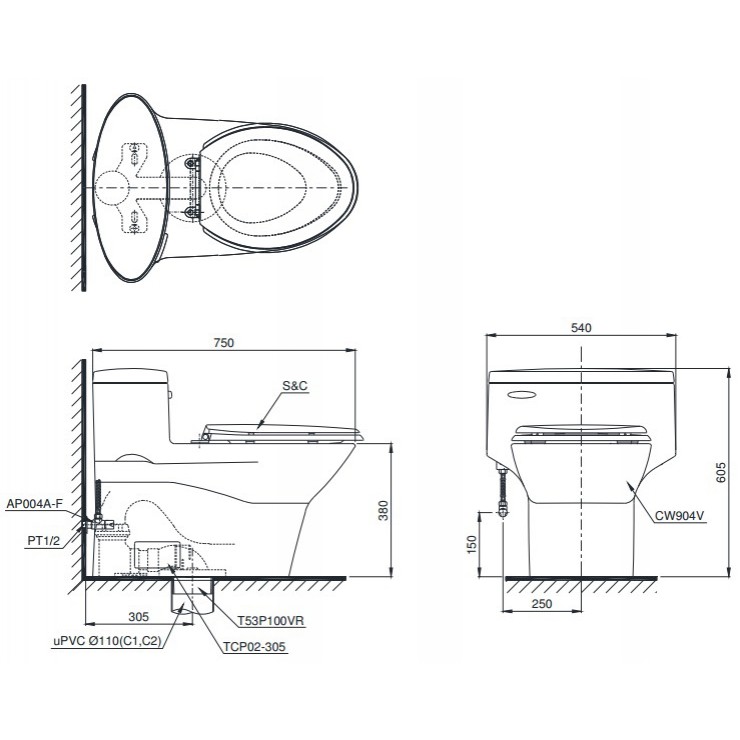 Đường kính đường thải: 63 (mm). Bề mặt nước rộng giúp ngăn mùi hiệu quả.