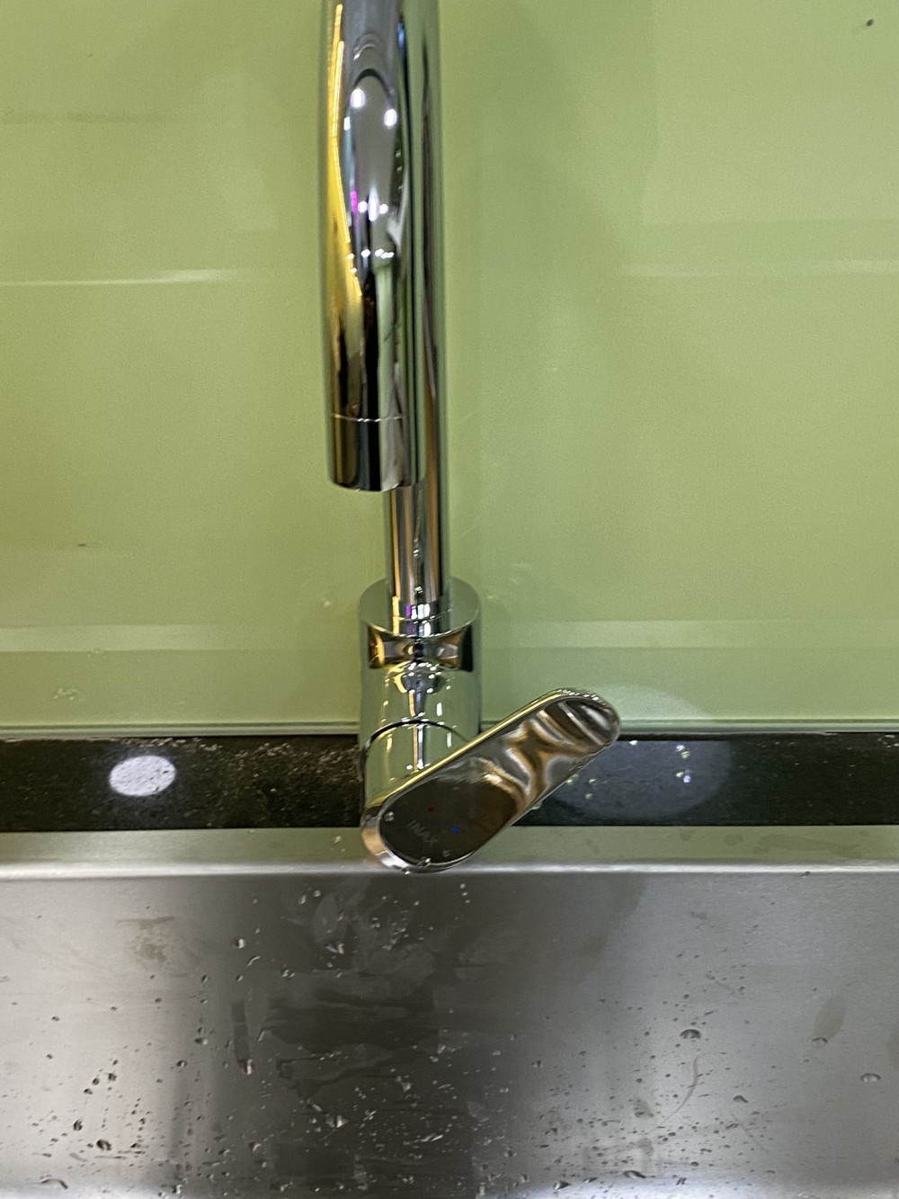 Width 192mm. Vòi bếp nóng lạnh, dạng cổ ngỗng giúp nước không bị bắn ra ngoài. Có thể xoay dễ dàng giữa 2 bồn rửa. Tay gạt êm ái, giúp nước nhanh chóng chảy ra và dễ dàng điều chỉnh nhiệt. Tuổi thọ trên 10 năm. Chất liệu đồng thau không gây nhiễm khuẩn cho nước. Phun bọt chống bắn. Dễ dàng lắp đặt