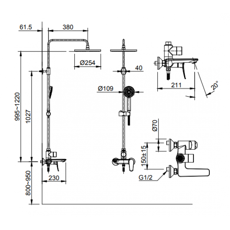 Sen cây với 3 đường nước: Sen đầu, sen tay, vòi xả, tối ưu trải nghiệm tắm. Cần gạt được chúc xuống dưới giúp người dùng dễ nhìn thấy kí hiệu nóng lạnh. Gác sen có thể điều chinh tùy theo độ cao của người dùng. Tốc độ ổn định nhiệt nhanh chóng. Nước tạo bọt vừa tiết kiệm vừa tăng cảm giác sảng khoái cho người sử dụng. Sen tắm nóng lạnh với phong cách thiết kế mạnh mẽ. Sen cây với thiết kế tay gạt dễ dàng sử dụng, cảm giác gạt trơn tru, dễ điều khiển lượng nước, tay sen gọn nhẹ cho người ưa thích sự tối giản. Bát sen gọn gàng cho làn nước ấm áp phủ đều lên da. Chất liệu đồng mạ niken crom tăng tuổi thọ cho sản phẩm, van nước bền bỉ, tuổi thọ lâu dài.