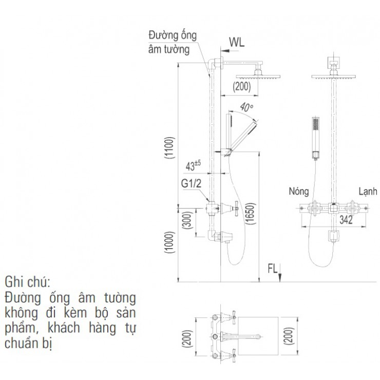 - Áp lực nước : 0.05 MPa ~ 0.75 MPa.