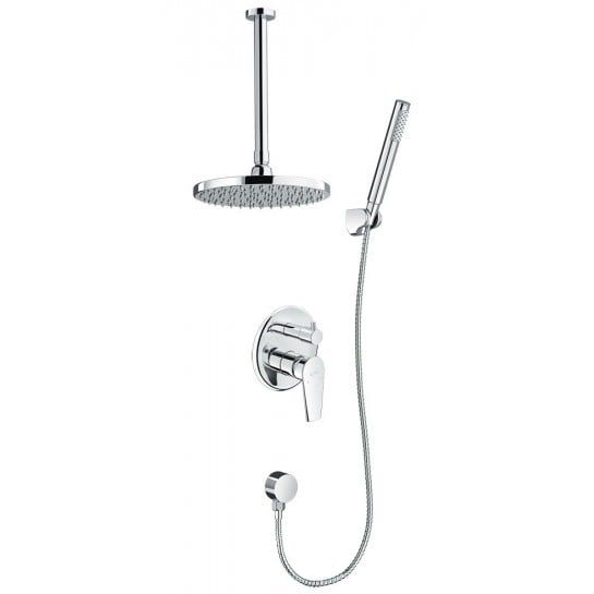 Sen tắm âm tường theo phong cách hiện đại, sen đầu được gắn lên tường nhà tạo cảm giác gọn gàng, sen tay được thiết kế tinh giản, gọn nhẹ, trang nhã, sản phẩm có một tay gạt điều chỉnh lượng nước và nhiệt độ, phù hợp với những phòng tắm nhỏ, thích sự tối giản.