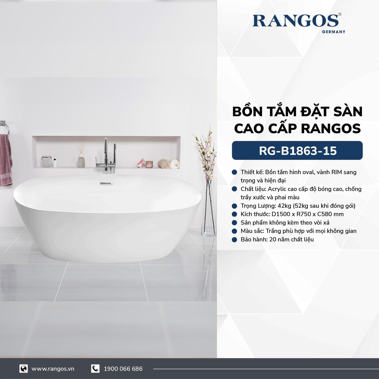 Bồn tắm ngâm đặt sàn cao cấp Rangos :