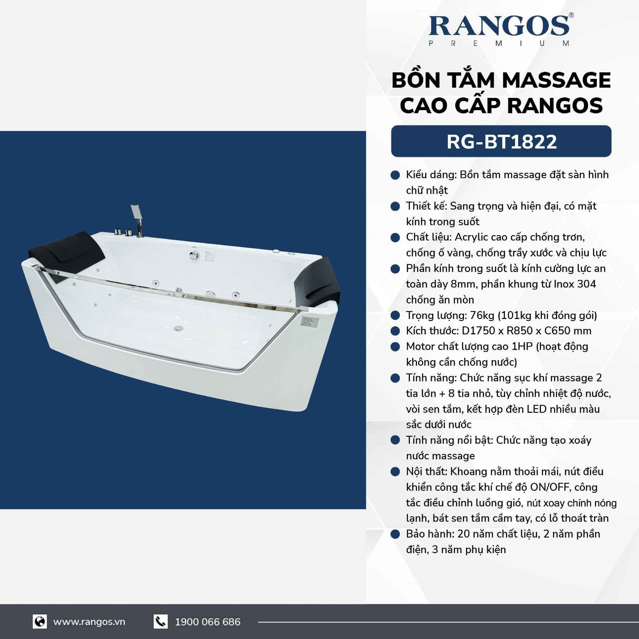 - Sản phẩm: Bồn tắm massage cao cấp Rangos RG-BT1822 :