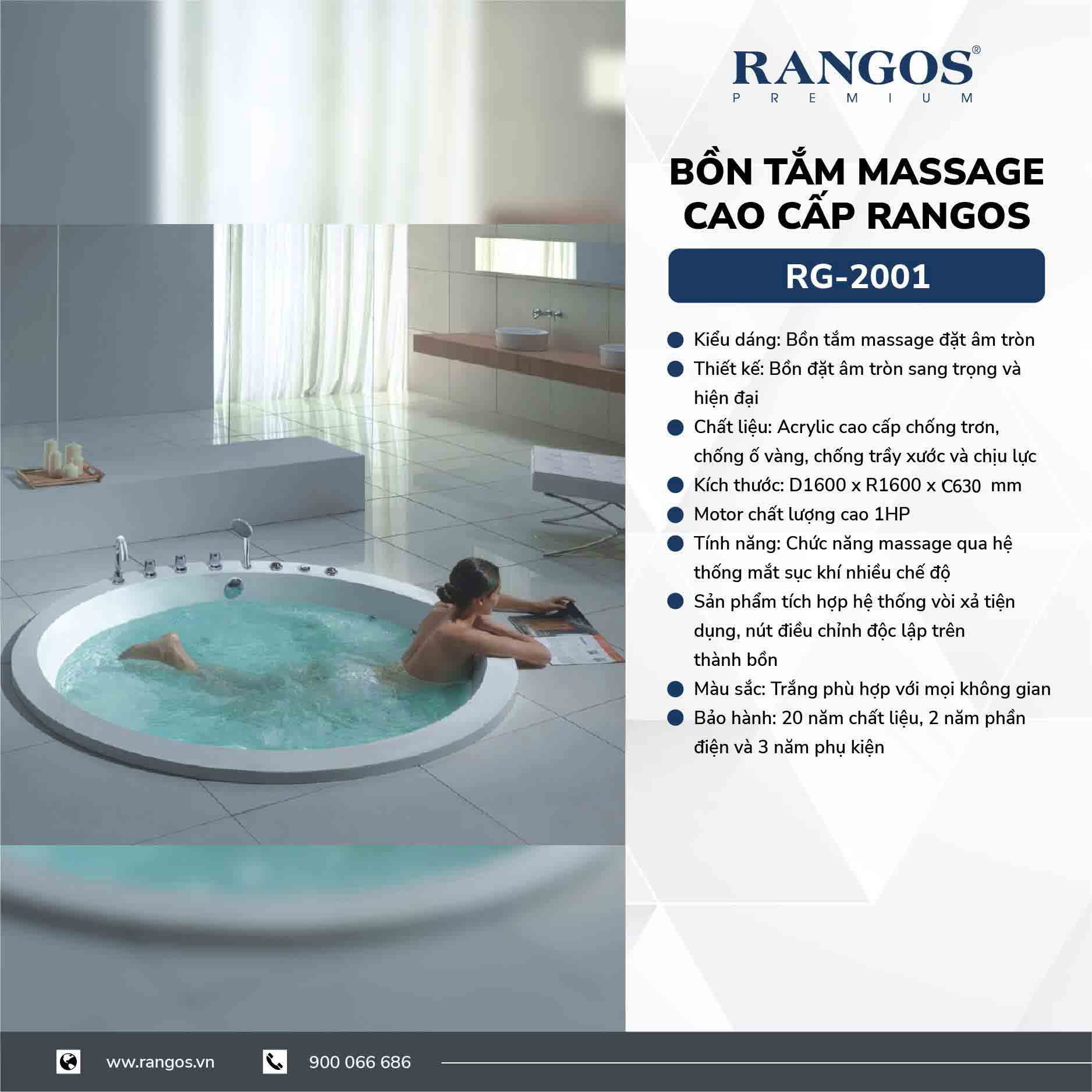 - Sản phẩm: Bồn tắm massage cao cấp Rangos RG-2001 :