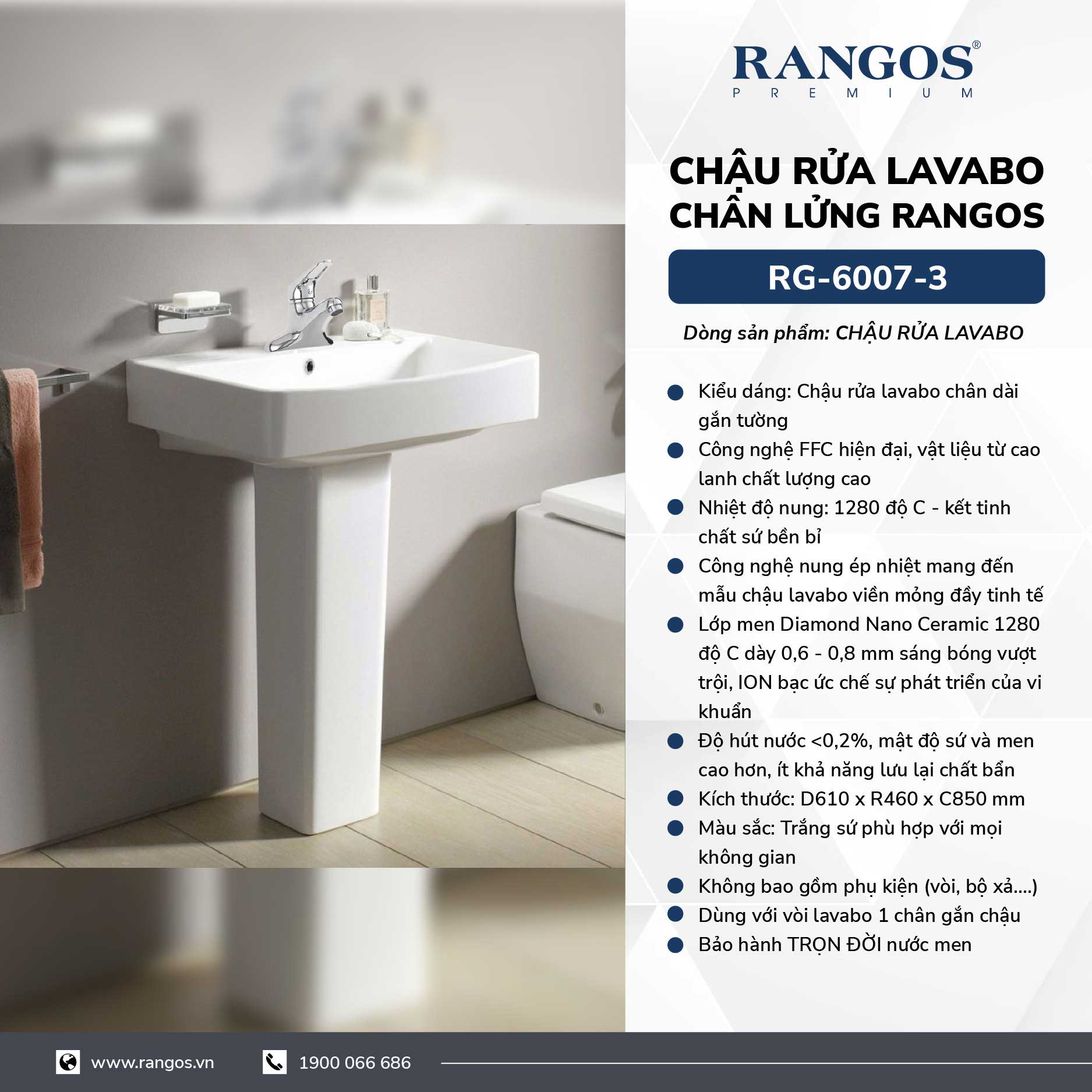 - Kiểu dáng: Chậu rửa lavabo chân dài gắn tường