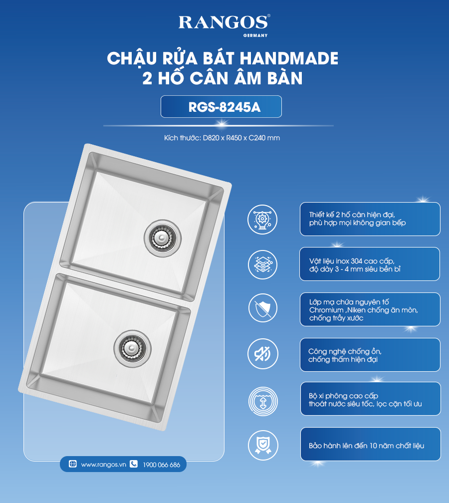 Tên sản phẩm: Chậu rửa bát handmade 2 hố cân âm bàn RGS-8245A.