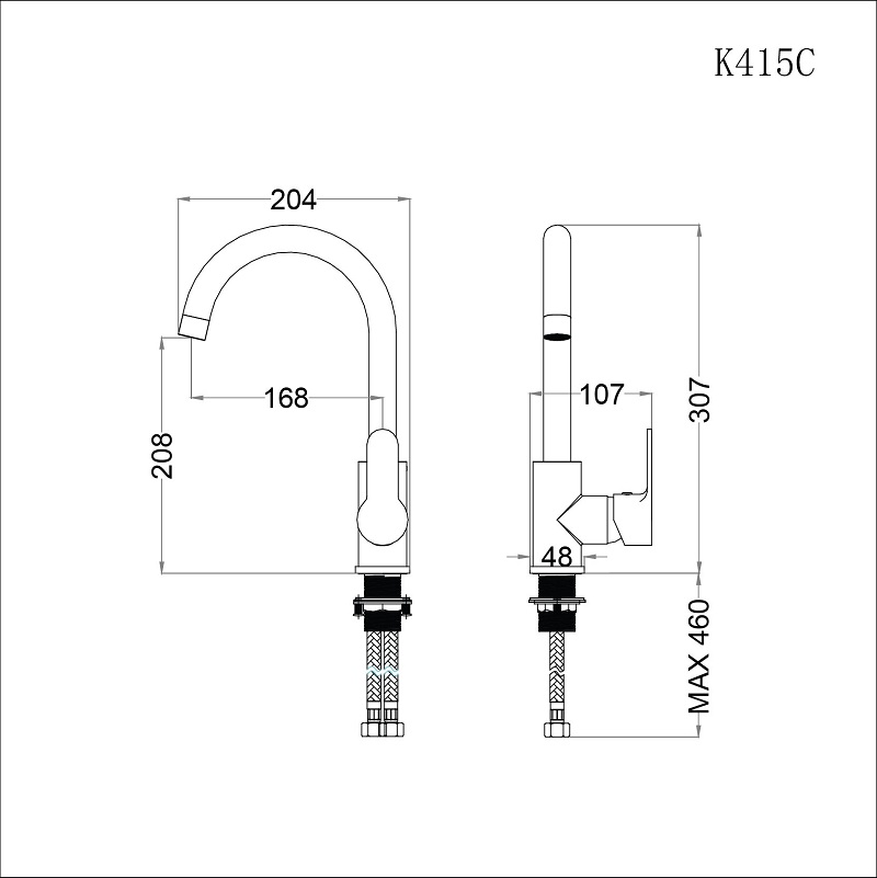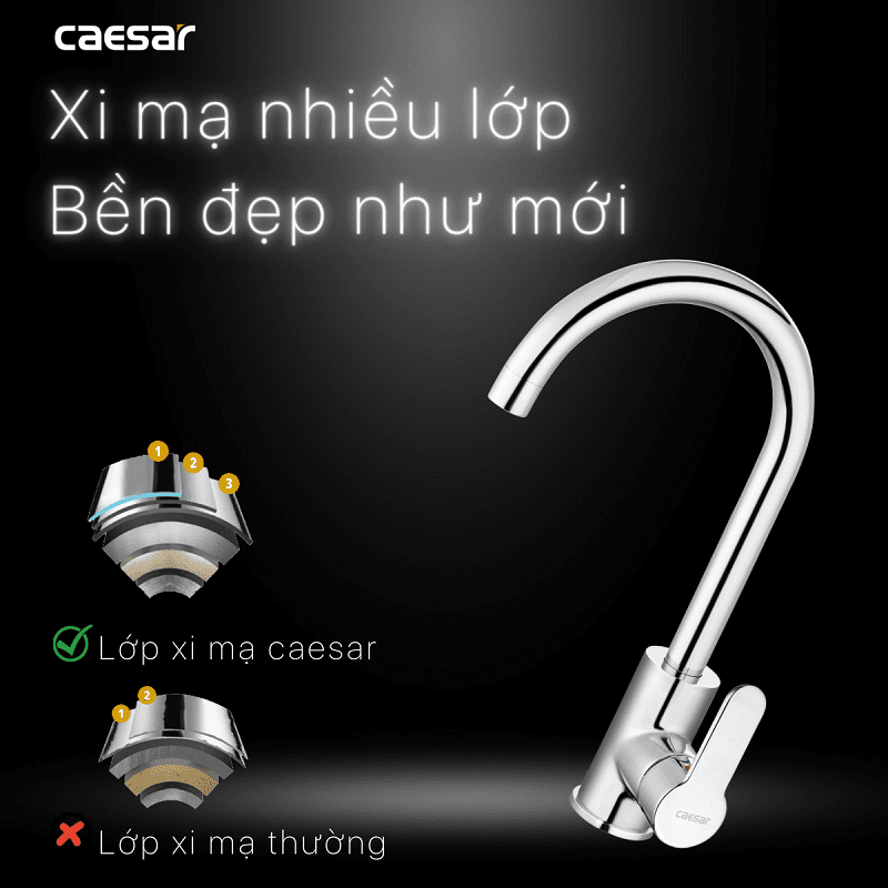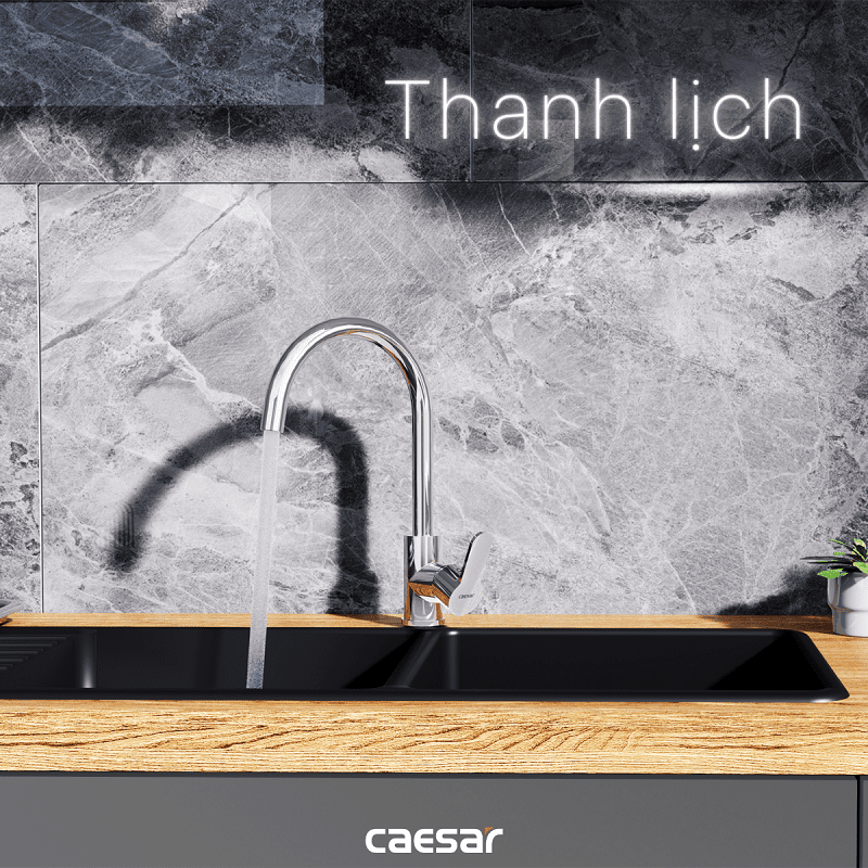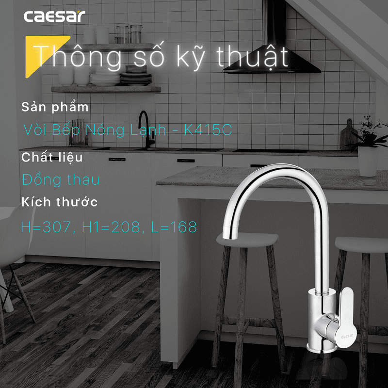 K415C. Vòi Bếp Nóng Lạnh. KT: H=307, H1=208, L=168 . Hãng sản xuất : CAESAR. Công nghệ: Đài Loan. Sản xuất tại Việt Nam.