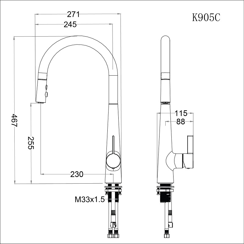 K905C. Vòi Bếp Nóng Lạnh. KT: H=467, H1=255, L=230mm .