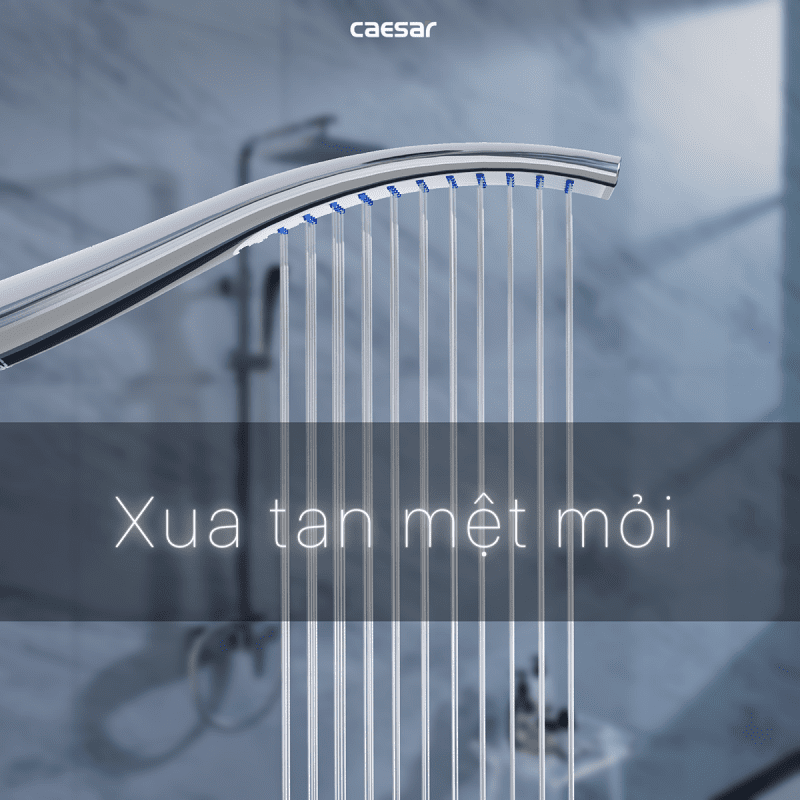 Vòi sen tắm đứng nóng lạnh. Chất liệu chính: Đồng thau. Chất liệu mạ: Crom, Niken. Bộ sen tắm 3 chế độ xả nước: Xả xô, tay sen và bát sen tắm đứng. Sen được thiết kế với công nghệ (ECOFUL SHOWER) giúp tiết kiệm nước. Chiều cao thay đổi: 1000 - 1300 mm. Hãng sản xuất: CAESAR. Công nghệ: Đài Loan. Sản xuất tại Việt Nam.