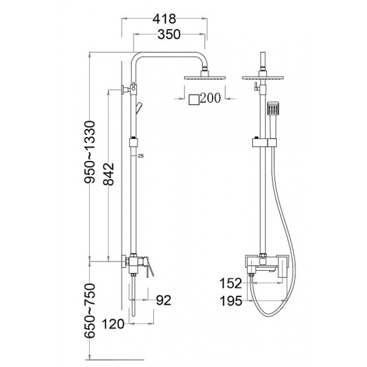Vòi sen tắm đứng nóng lạnh. Chất liệu chính: Đồng thau.