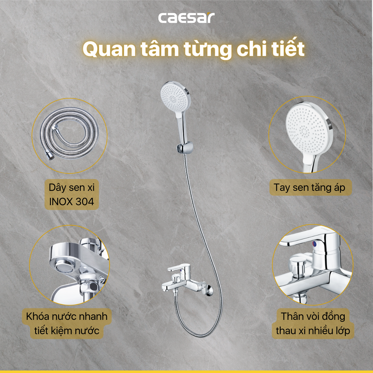 Chất liệu mạ: Crom, Niken. Bộ sen tắm 2 chế độ xả nước: Xả xô qua vòi và tay sen. Sen được thiết kế với công nghệ (ECOFUL SHOWER) giúp tiết kiệm nước.