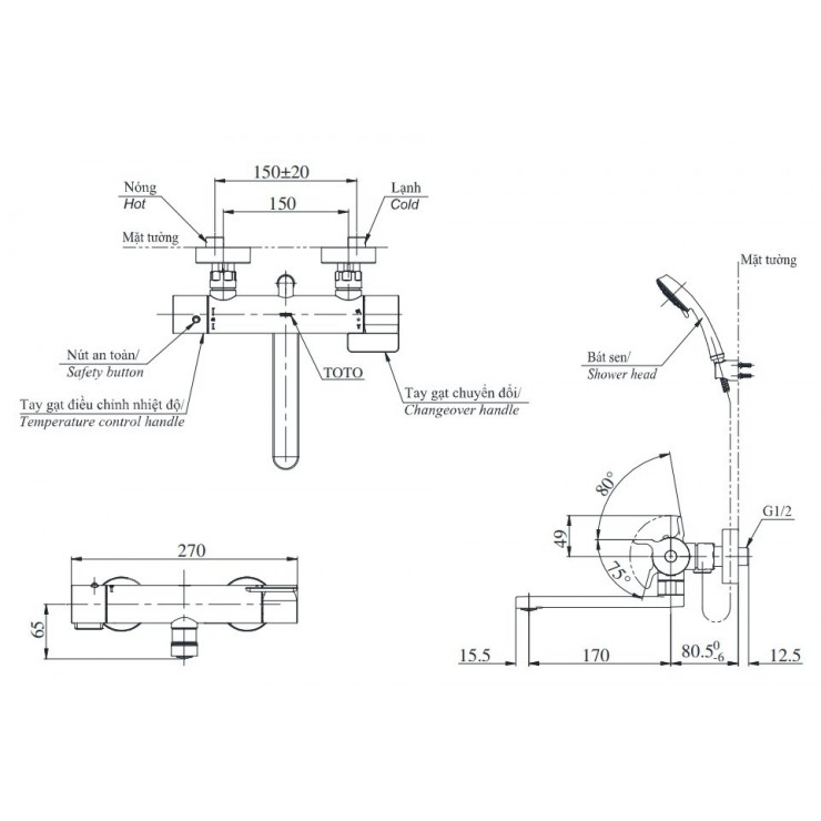 Áp lực nước: 0.05MPa ~ 0.75MPa. Đầu vòi tạo bọt nano, có chức năng xả êm, phun chụm tia, ứng dụng công nghệ triệt âm. Đầu vòi có nút điều chỉnh lưu lượng nước. Đầu vòi dài có thể cấp nước vào bồn bồn tắm. Thương hiệu: Toto Nhật Bản. Sản xuất tại Việt Nam.