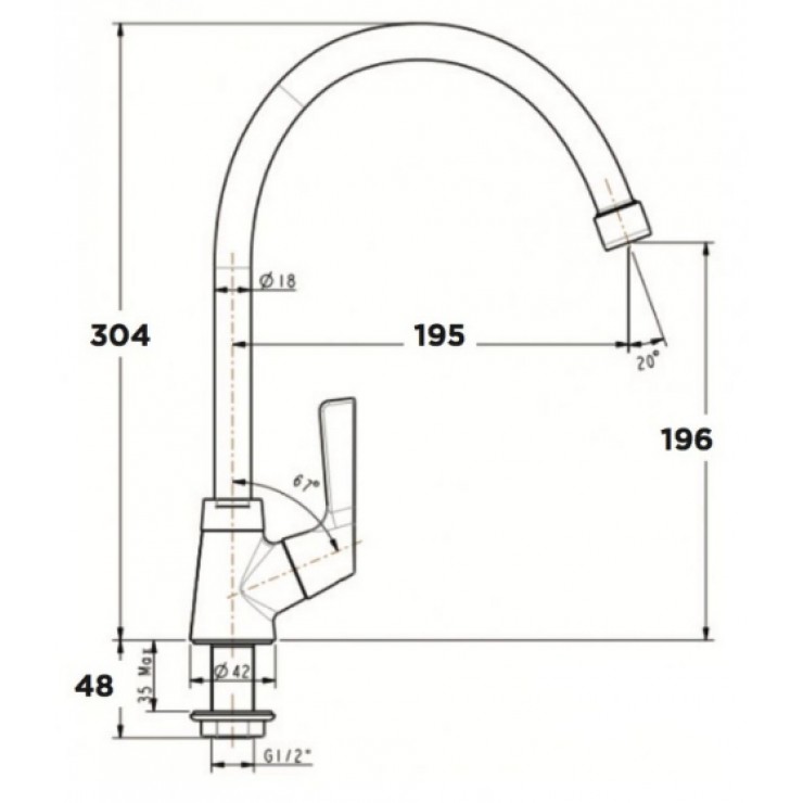 Kích Thước Đầu Vòi: R195mm x H196mm. Vòi sen quay 360 độ đem lại không gian linh hoạt và dễ dàng sử dụng. Màu Sắc: Mạ chrome.