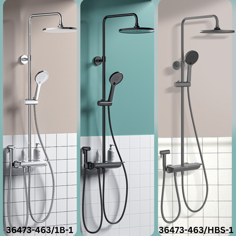 Mã sản phẩm: 36473-463/1B-1. Chất liệu: Đồng tinh luyện; bề mặt mạ crom niken Đường kính van chia nước: φ35 Tính năng bát sen: 4 chế độ Bát sen trần: Núm silicon mềm, hòa trộn không khí, tự làm sạch, dây chống xoắn