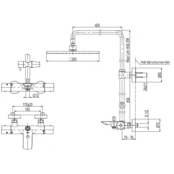 Áp lực nước: 0.15MPa ~ 0.75MPa. Đầu vòi và sen tạo bọt nano, có chức năng xả êm, phun chụm tia, ứng dụng công nghệ triệt âm. Thương hiệu: Toto Nhật Bản. Sản xuất tại Trung Quốc.