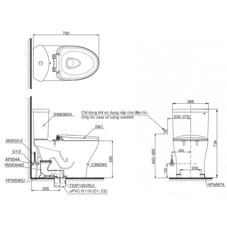 Nắp rửa điện tử TCF24460AAA (W15) Giấu Dây sản xuất tại Malaysia.