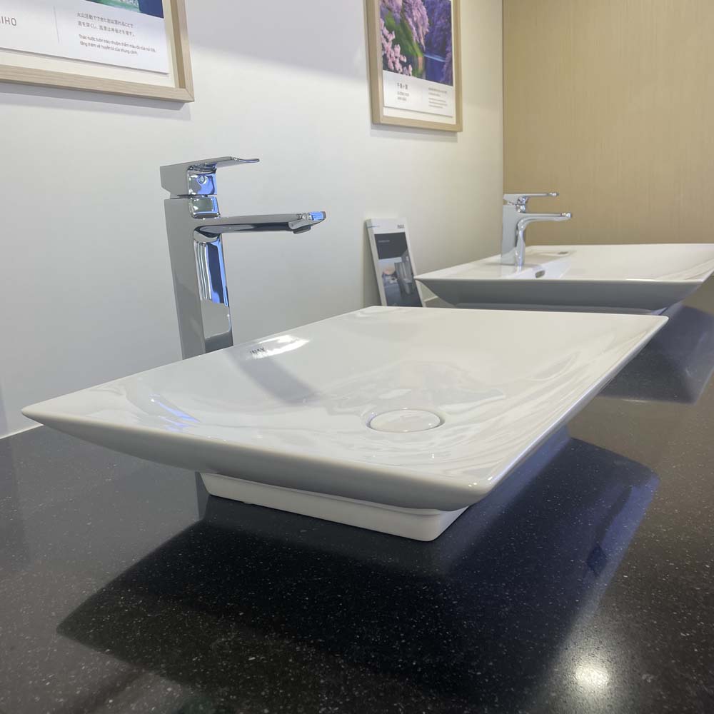 Chậu đặt bàn cao cấp AL-S610V. Công nghệ CERAFINE tiên phong cho thiết kế sứ siêu mỏng, đem lại diện mạo thanh lịch, cao cấp cho sản phẩm Thiết kế với cảm hứng từ cổng Tori, hài hòa theo tỉ lệ bạc, mang hơi thở kiến trúc Nhật Bản, tôn lên vẻ đẹp của không gian. Công nghệ AQUA CERAMIC bảo vệ men sứ 100 năm trắng sạch, chống bám bẩn. Nút nhấn xả bằng sứ đồng bộ sang trọng.