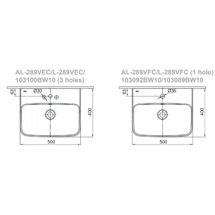 Depth 170mm Height 400mm Width 500mm. Chậu rửa treo tường, thiết kế tối giản, dễ dàng vệ sinh.