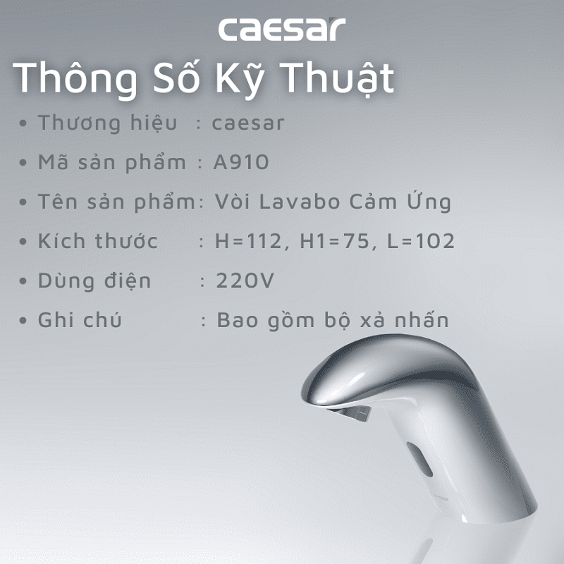 Vòi Lavabo A910 cảm ứng từ dành cho chậu 1 lỗ.
