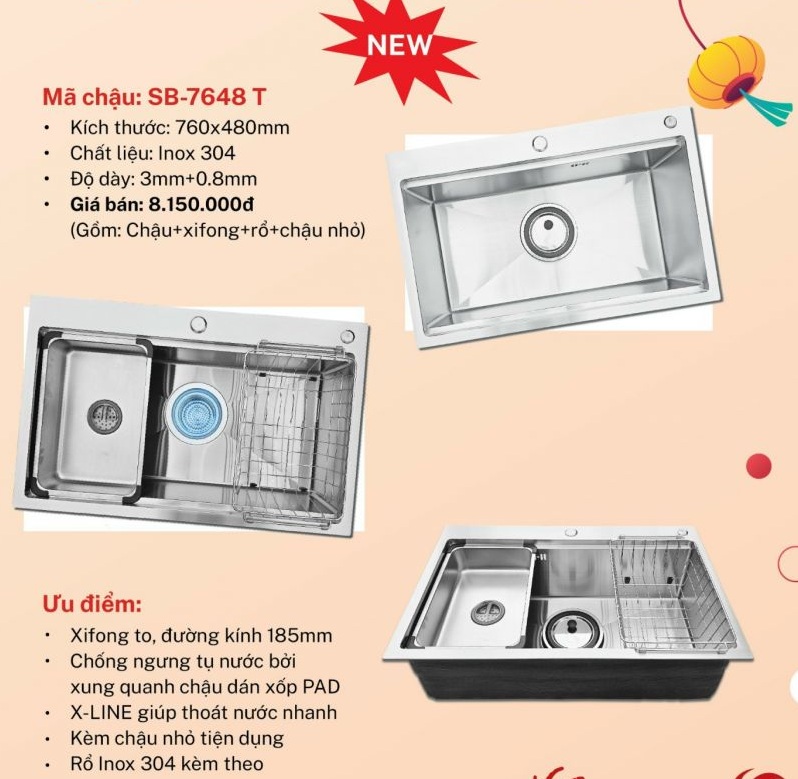 Chậu rửa bát 1 hố cao cấp: Sobisung SB-7648T