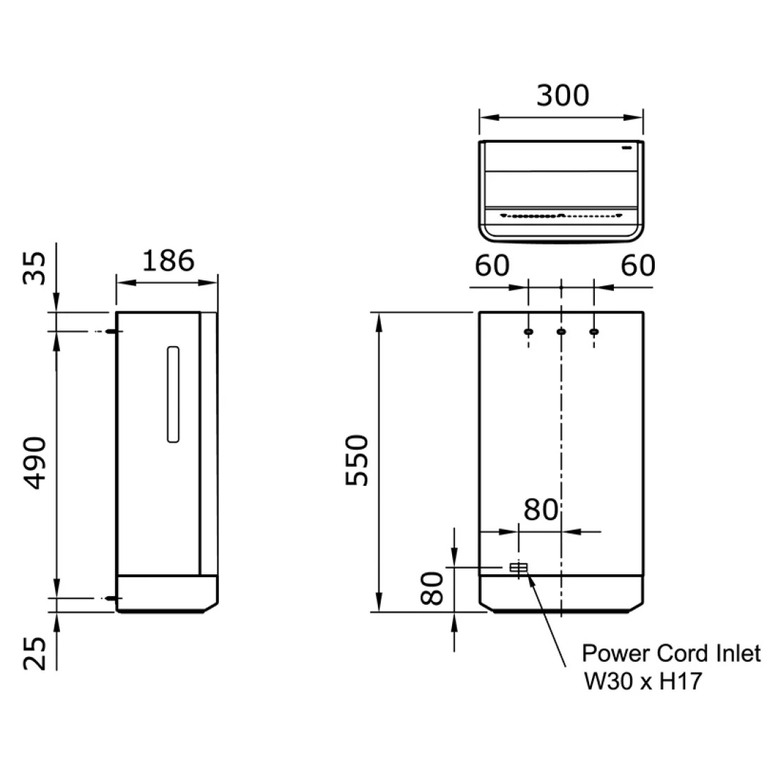 Kích thước: 300x186x550 mm.