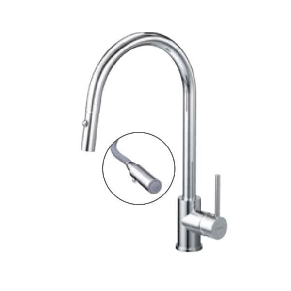 Đầu vòi dây rút tiện lợi giúp tăng diện tích sử dụng của vòi.